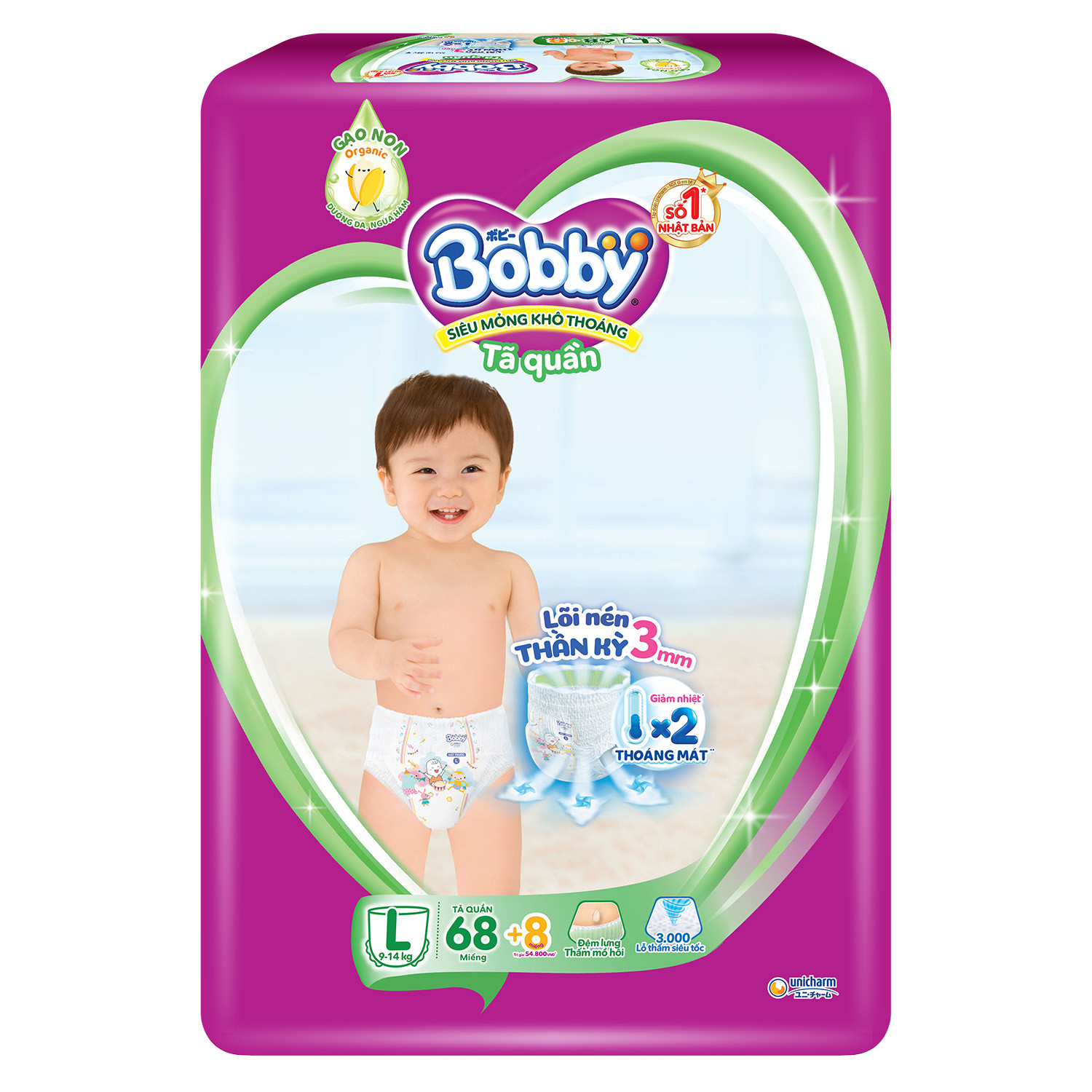 Bỉm – Tã quần Bobby size L – 68 + 8 miếng (Cho bé 9 – 14kg)