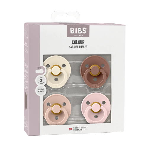 Bộ 4 ty ngậm núm tròn cao su BIBS Colour Latex Size 2 (trên 6 tháng), Ivory/Blush/Woodchuck/Blossom.