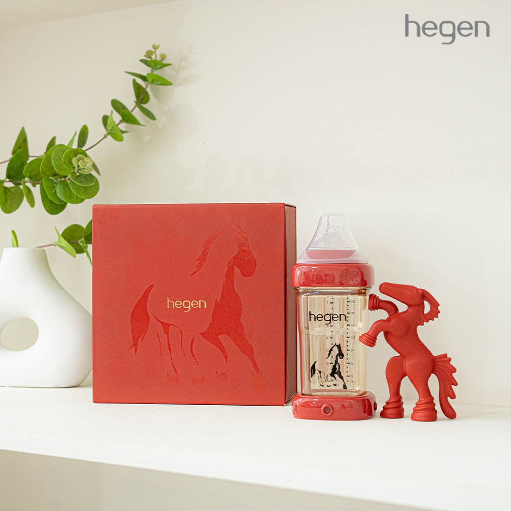 - Bình sữa Hegen PCT 240ml/8oz PPSU, kết hợp với Núm ngậm nướu Majestic Stallion được chế tác tỉ mỉ với hình dáng một chú ngựa phi nước đại, vừa là người bạn đồng hành êm dịu cho nướu răng ngứa ngáy của bé, vừa là bình sữa có thể chuyển đổi thành hộp đựng đồ với nắp đậy màu đỏ ma vương phù hợp khi bé lớn lên.