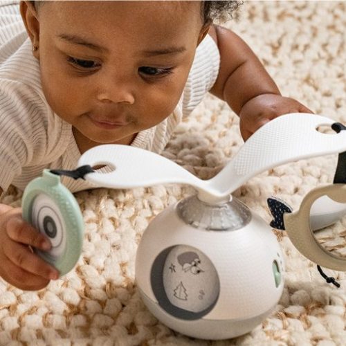 - Tiny Love Tummy Time Mobile Black & White Decor 2 trong 1 đa năng là đồ chơi di động vui nhộn cho bé nằm sấp.