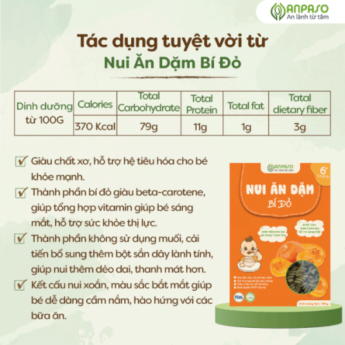 | Tên sản phẩm | Nui ăn dặm bí đỏ |