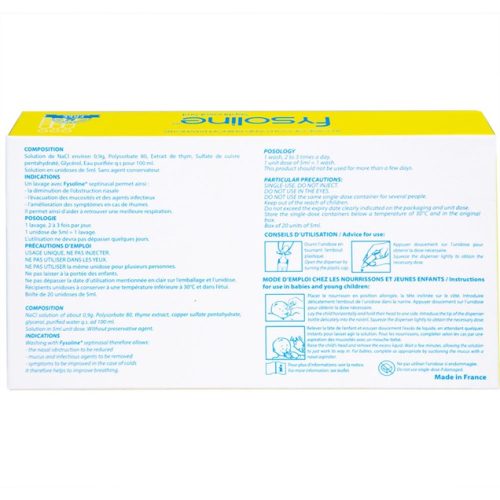 Fysoline là nhãn hiệu nước muối sinh lý cao cấp, do hãng dược phẩm hàng đầu tại Pháp – Gifrer sản xuất và được nhập khẩu 100% từ Pháp về Việt Nam với đầy đủ giấy tờ chứng minh chất lượng và nguồn gốc. Với thành phần lành tính, các sản phẩm từ Fysoline được nhiều bác sĩ tin tưởng và khuyên dùng. Đặc biệt, Fysoline Hồng và Fysoline Vàng dạng ống đơn liều còn có thể sử dụng cho trẻ sơ sinh từ 0 ngày tuổi.