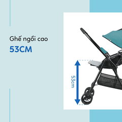 2. Ghế ngồi cao 53cm– cao hơn so với dòng xe đẩy chống gù trước đây và so với các dòng xe đẩy khác trên thị trường. Ghế ngồi cao giúp giảm thiểu bức xạ nhiệt, đồng thời cách ly được vi khuẩn, khói bụi trên đường. Ghế ngồi cao cũng giúp mẹ dễ dàng thao tác bế bé ra vào xe và giao tiếp cùng bé trên xe.