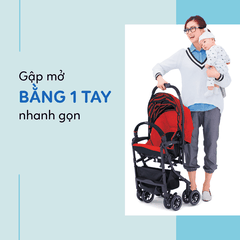 7. Gập mở xe đẩy bằng 1 tay nhanh gọn: Duy nhất Combi với công nghệ tự động thu lưng ghế giúp xe đẩy có thể được gập gọn ngay cả khi lưng ghế vẫn ở độ ngả thấp nhất. Mẹ sẽ thao tác 1 tay thật nhanh chóng và gọn nhẹ.