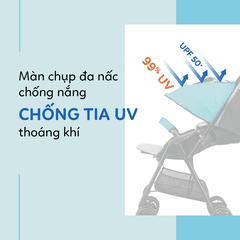 – Khung màn chụp chắc chắn, điều chỉnh được nhiều nấc khác nhau để mẹ có thể hạ màn chụp xuống khi trời nắng hoặc kéo lên để bé có thể ngắm cảnh khi đi dạo.