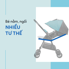 – Điều chỉnh độ dài của lòng ghế: bằng hai thanh đỡ chắc chắn, có thể kéo ra hoặc thu vào dễ dàng, linh hoạt theo tư thế nằm hoặc ngồi của Bé.