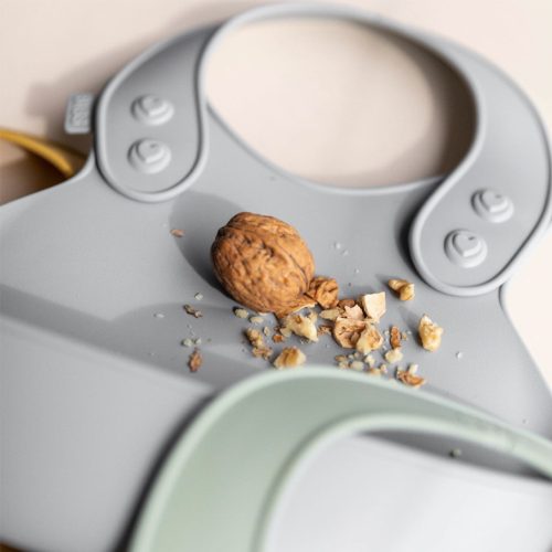 - Yếm có túi ở phía trước để hứng thức ăn bị đổ của bé. Yếm có thể điều chỉnh.