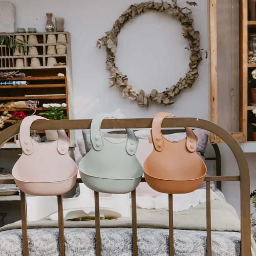 - Yếm Bibs Dinner Bib lấy cảm hứng từ yếm trẻ em cổ điển và có nút cài phía trước.
